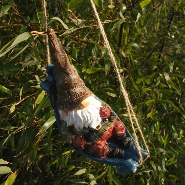 Ook deze kabouter met zijn lange witte baard, wollige wanten en grote pinnemuts zou graag in jouw tuin vertoeven. Genietend van zijn middagdutje in de hangmand is deze tuinkabouter een originele tuindecoratie voor het hele gezin.