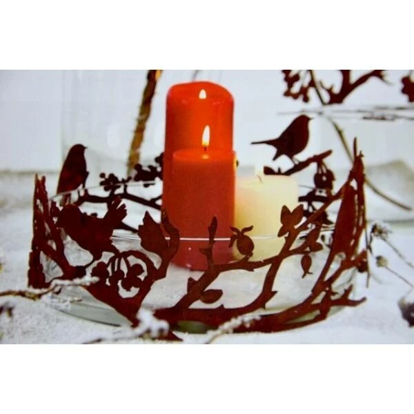 Deze exclusieve ring is vervaardigd uit speciaal gevormd en behandeld metaal met een roestige look en kan zowel in het interieur als buiten op de tuintafel gebruikt worden.