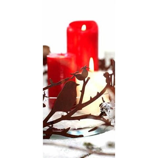 Een prachtig vervaardigde decoratieve ring met vogels, takken en bessen. De ring kan gebruikt worden als tafeldecoratie rond kaarsen, kerstballen, dennnenappels, sierfruit… maar kan ook gebruikt worden bij verschillende bloemcreaties.