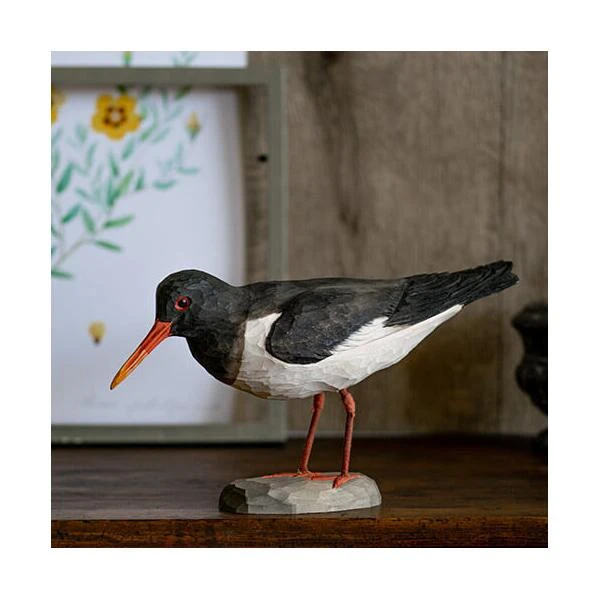 Een prachtige weergave van een steltenloper, dat is dit ambachtelijk vervaardigd houten beeld van de scholekster (Haematopus Ostralegus).