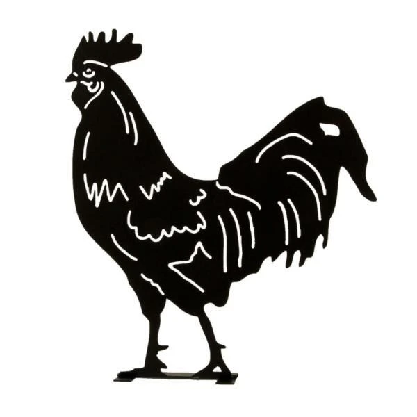 Je kan het silhouet van de haan ergens in de tuin vastschroeven dankzij de voorziene gaten of je kan het gewoon ergens neerzetten dankzij de bijgeleverde zwarte metalen voetclips.