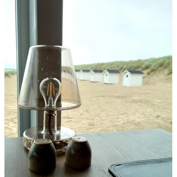 Verder is Transloetje oplaadbaar en heeft hij 3 verschillende lichtstanden. Afhankelijk van de stand bedraagt de accuduur van deze retro tafellamp 9, 15 of zelfs 20 uur. Transloetje is binnen te gebruiken en is gemaakt van polycarbonaat.