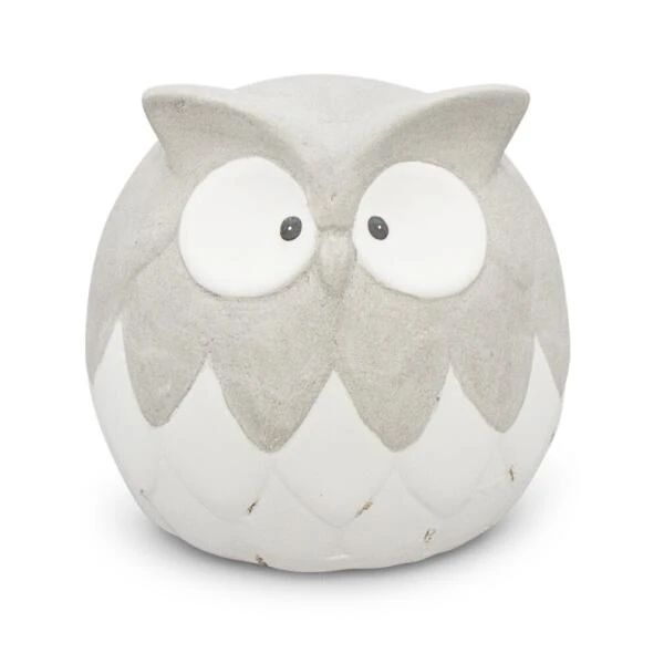 Een gestileerde uil in keramiek met een fraai design. Met zijn witgrijze tinten past dit beeld zowel in een modern en als in een landelijik interieur. Maar ook in de tuin of op het terras verdient dit beeld een leuk plekje!