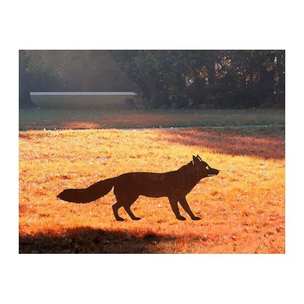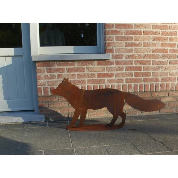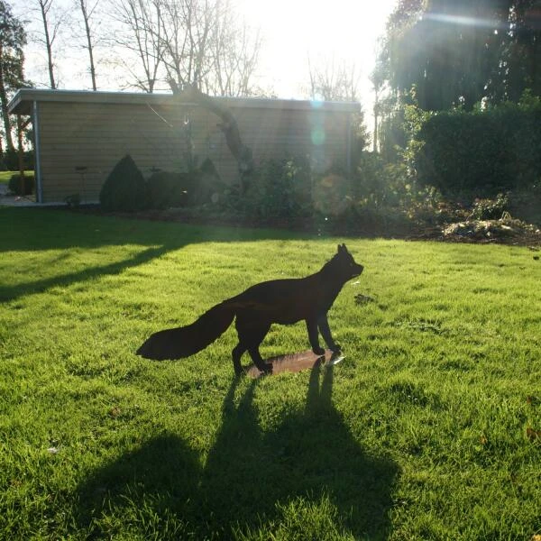 Deze mooie vos is gemaakt uit speciaal gevormd en behandeld metaal met een roestige look. Met de voorziene stevige basis kan je de vos zowel binnen als buiten een plekje geven.